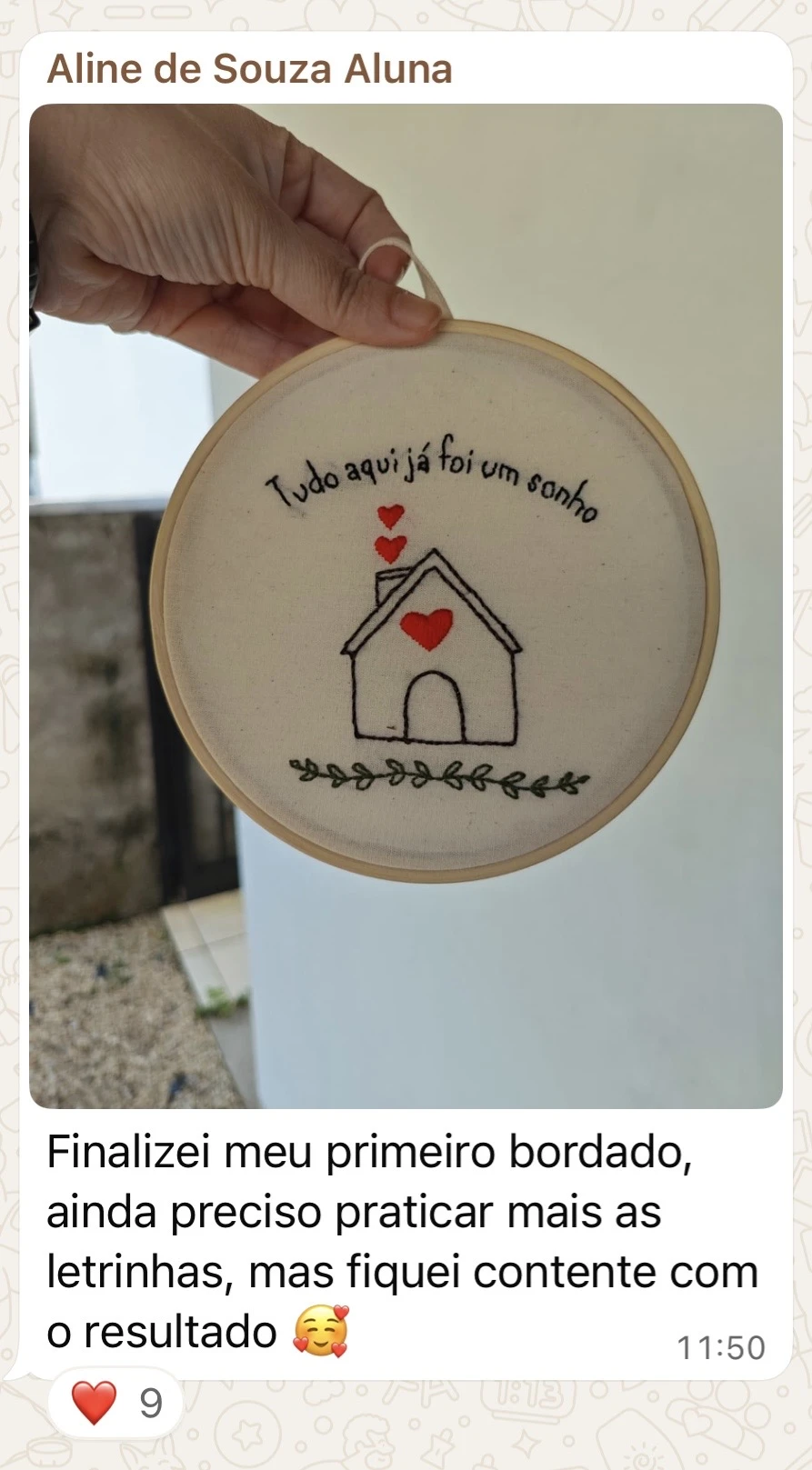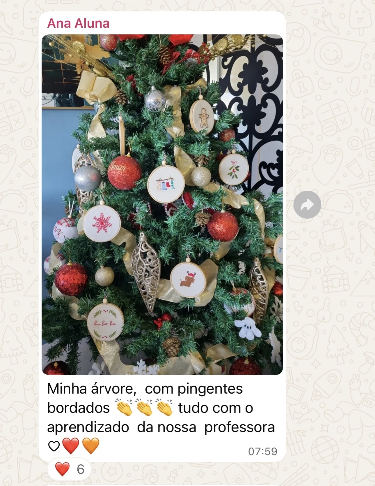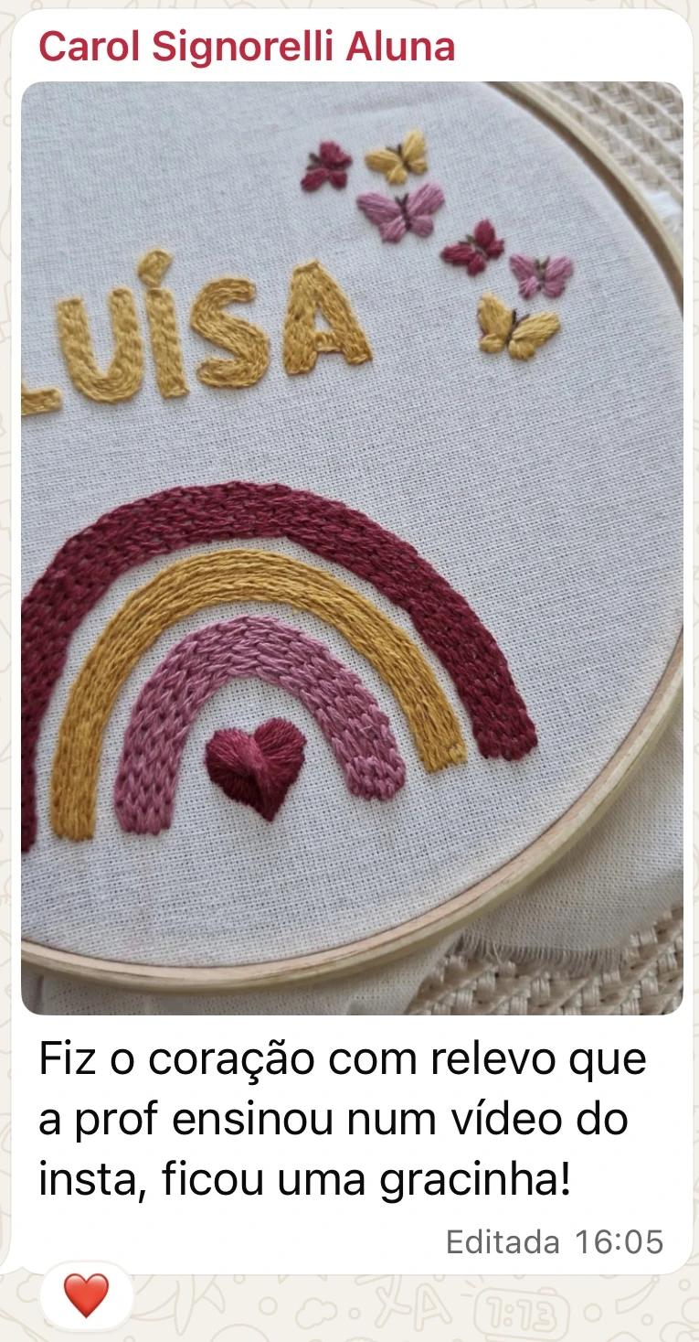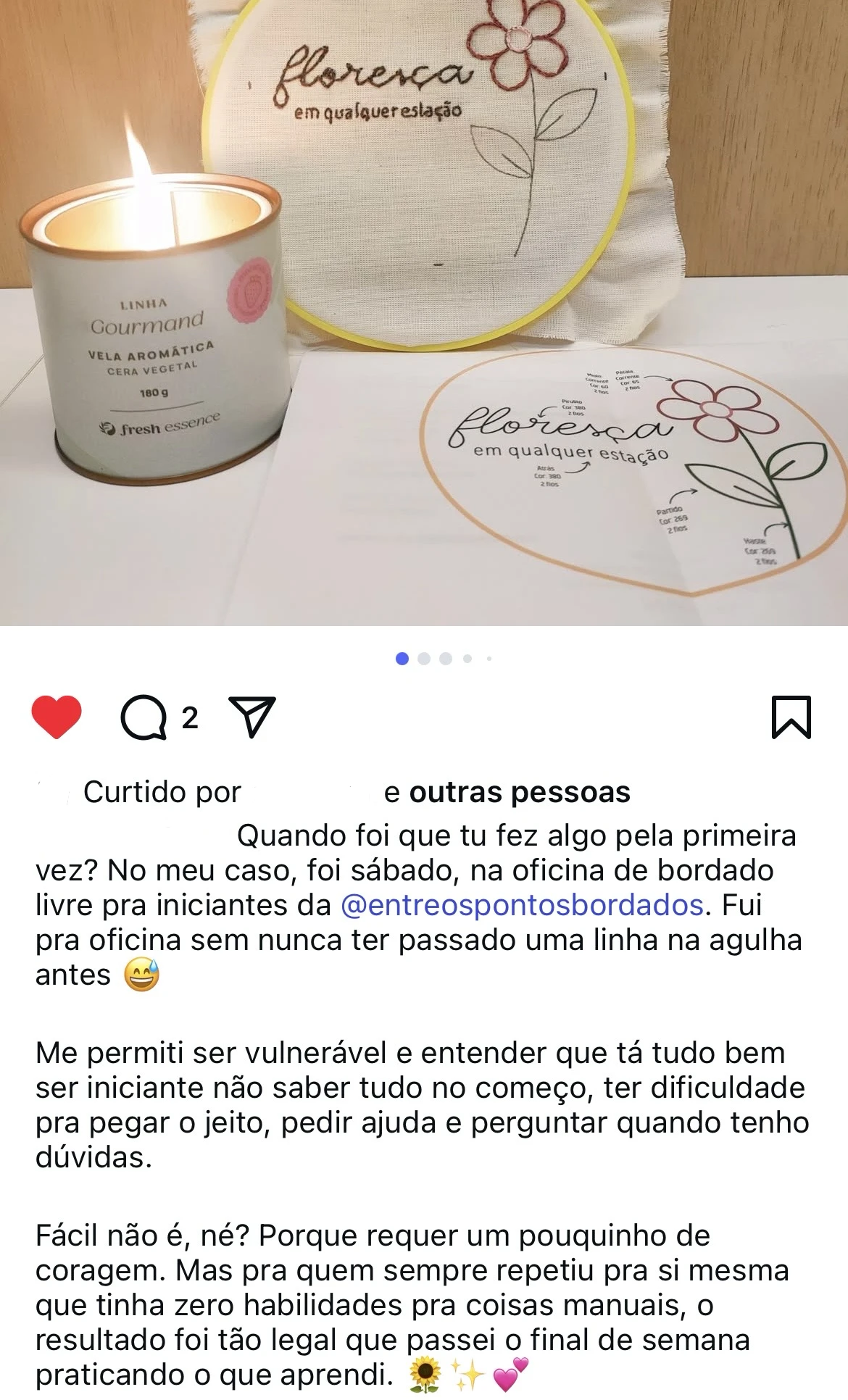 Já ensinei muitas mulheres a bordar e a ter esse momento de autocuidado com uma atividade manual. Hoje, você, de qualquer lugar do mundo, poderá se tornar uma fiel bordadeira. Vamos juntas espalhar o feito à mão pelo mundo?